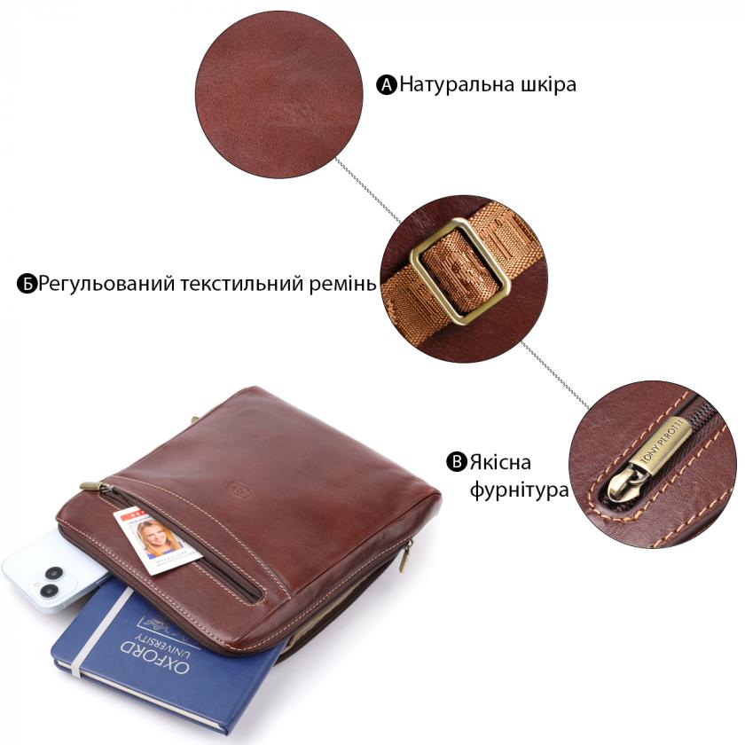 Характеристики: Мужская сумка через плечо из гладкой натуральной кожи Tony Perotti 20854_1 (9137-20 moro) Коричневый