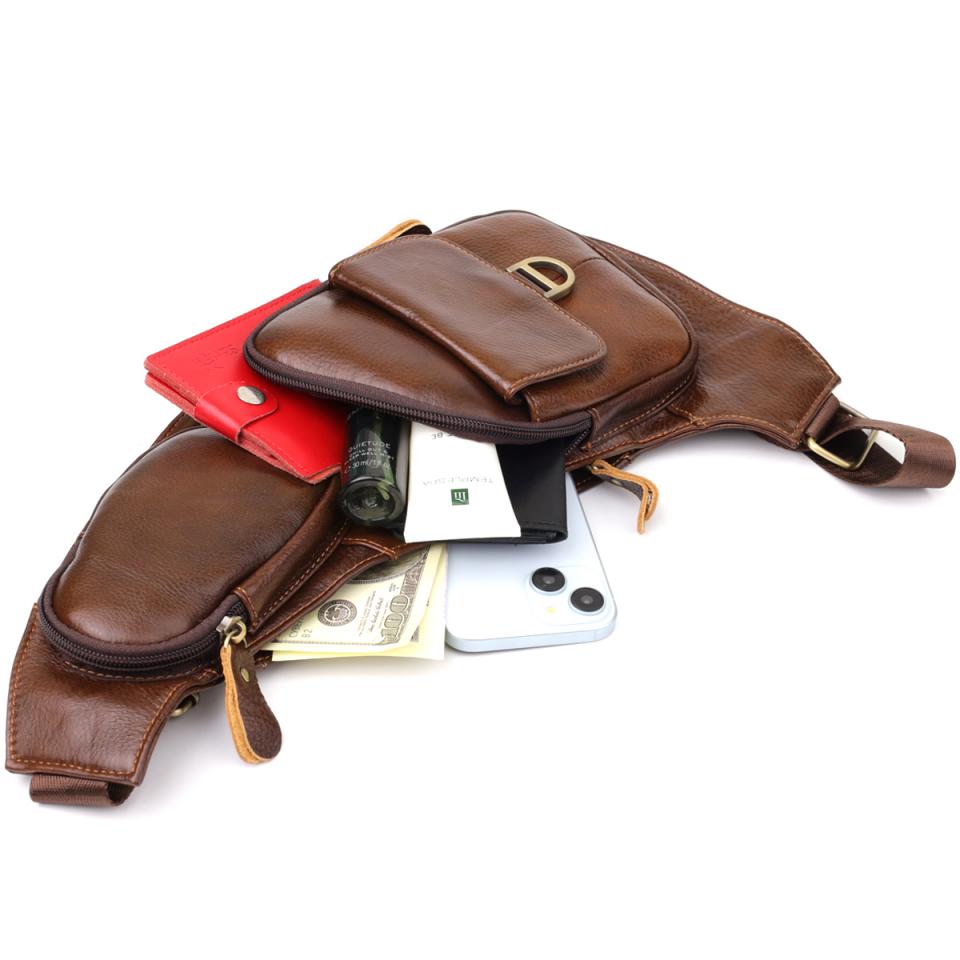 Мужская сумка через плечо из гладкой натуральной кожи Vintage 22965 Коричневый
