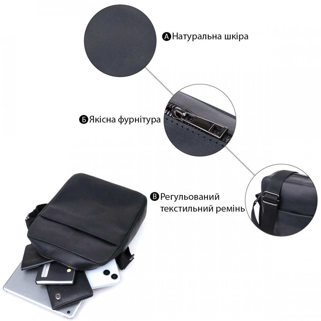 Характеристики: Мужская сумка через плечо из матовой натуральной кожи Shvigel 22848 Черная