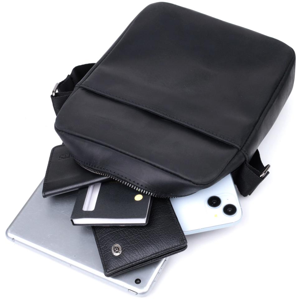 Мужская сумка через плечо из матовой натуральной кожи Shvigel 22848 Черная