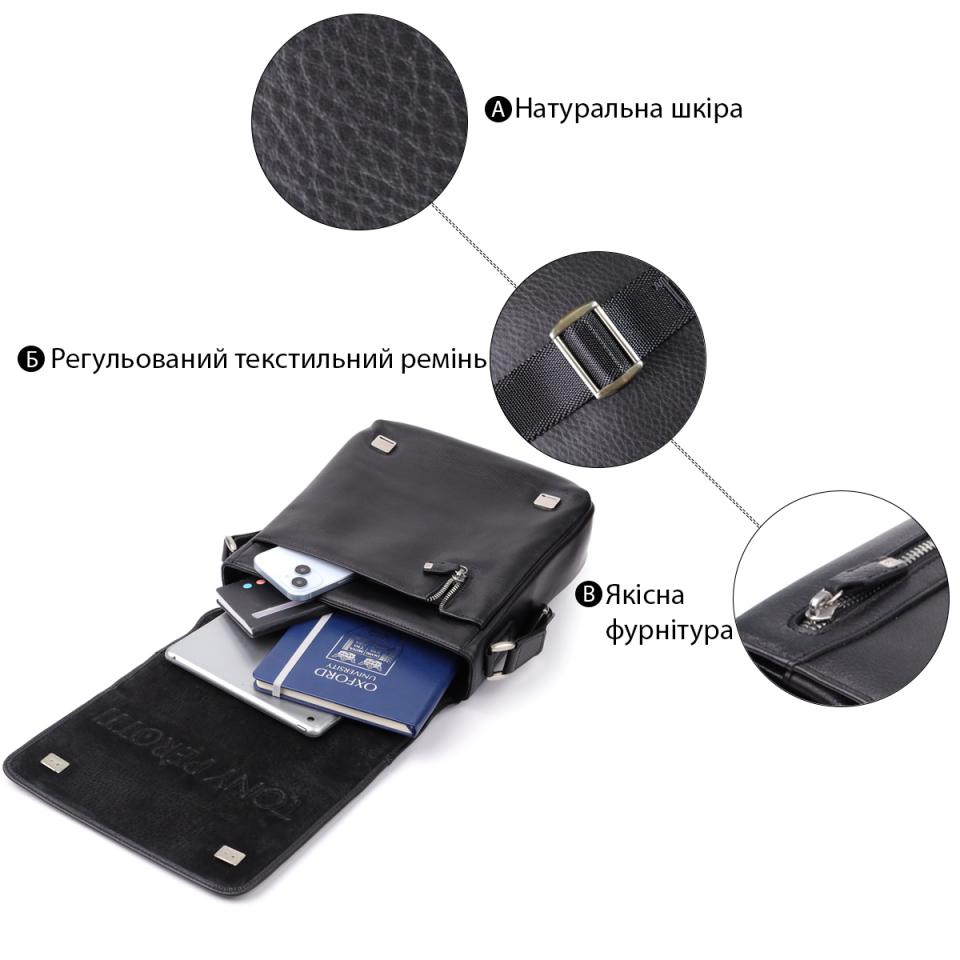 Характеристики: Мужская сумка через плечо из мягкой натуральной кожи Tony Perotti 20845_1 (9207-24 nero) Черный