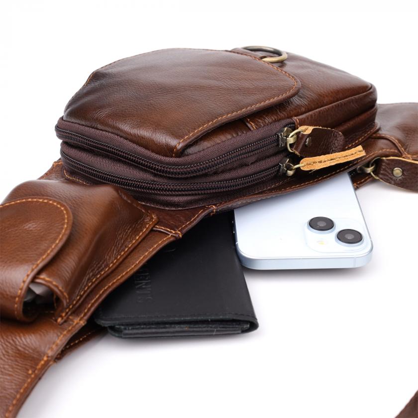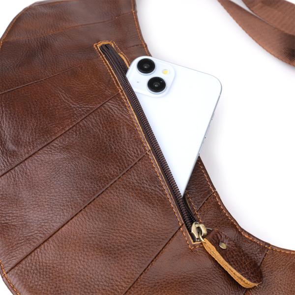 Полукруглая мужская кожаная сумка через плечо — практичный и стильный аксессуар для современного мужчины, который ценит качество и удобство.