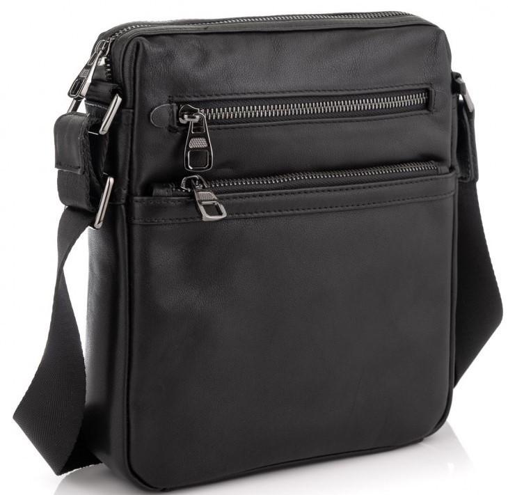 Мужская сумка из натуральной кожи Tiding Bag черная 9830A