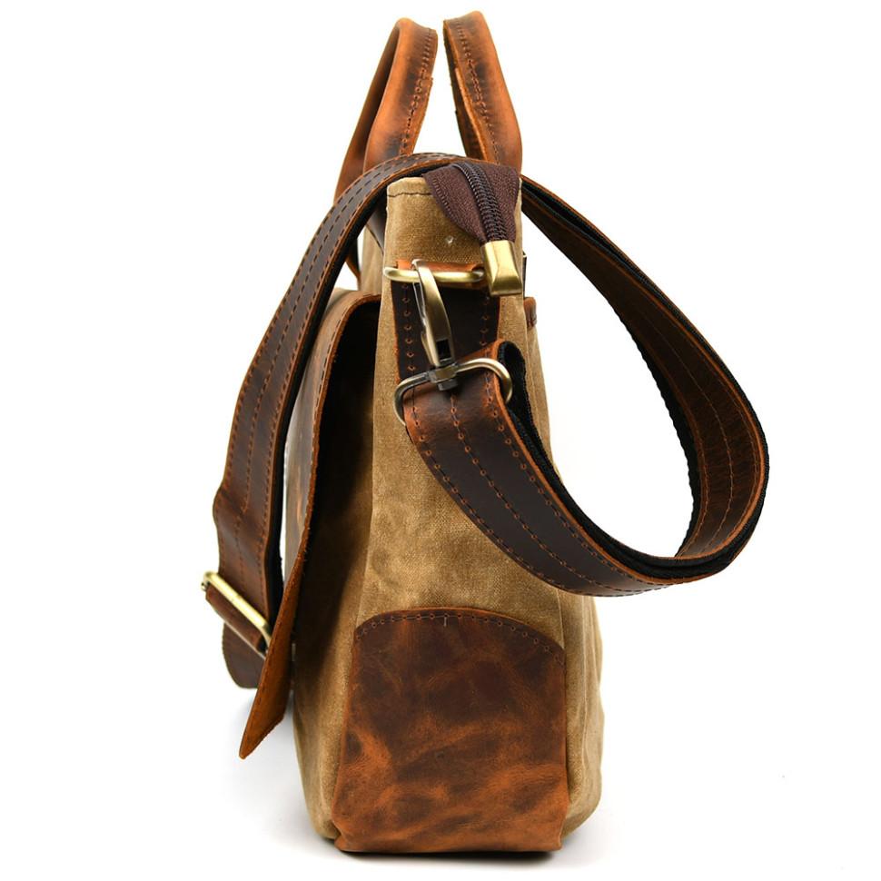 Мужская сумка из вощеного канваса и лошадиной кожи TARWA RYW-3990-3md - коричневая кожа крейзи хорс и канвас (парусина) коричневого цвета, вощеный, водостойкий. Размеры 36*27*10см. Имеет несьемный кожаный ремень.