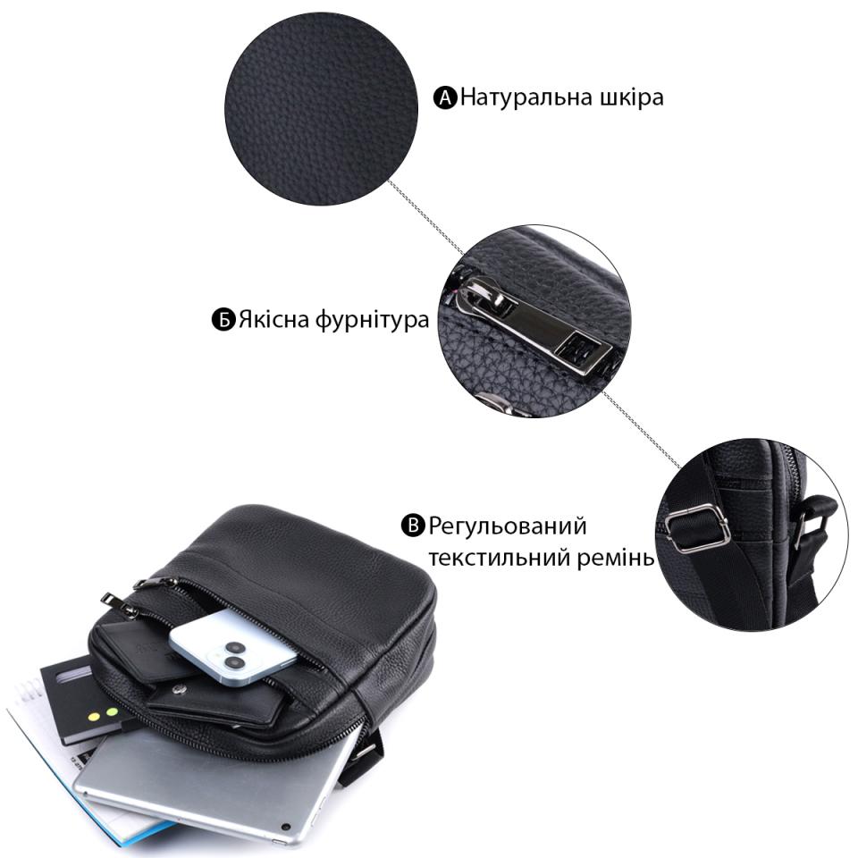 Характеристики: Мужская сумка мессенджер из зернистой натуральной кожи Shvigel 22847 Черная