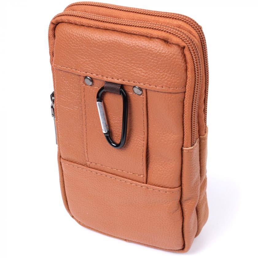 Описание: Мужская сумка на пояс на два отделения из натуральной кожи Vintage 22737 Рыжий