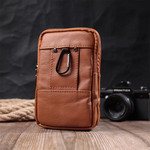 Отзывы: Мужская сумка на пояс на два отделения из натуральной кожи Vintage 22737 Рыжий