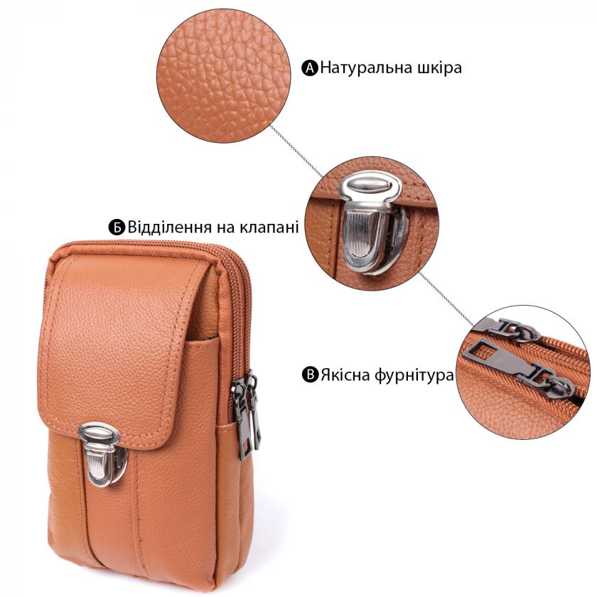 Характеристики: Мужская сумка на пояс на два отделения из натуральной кожи Vintage 22737 Рыжий