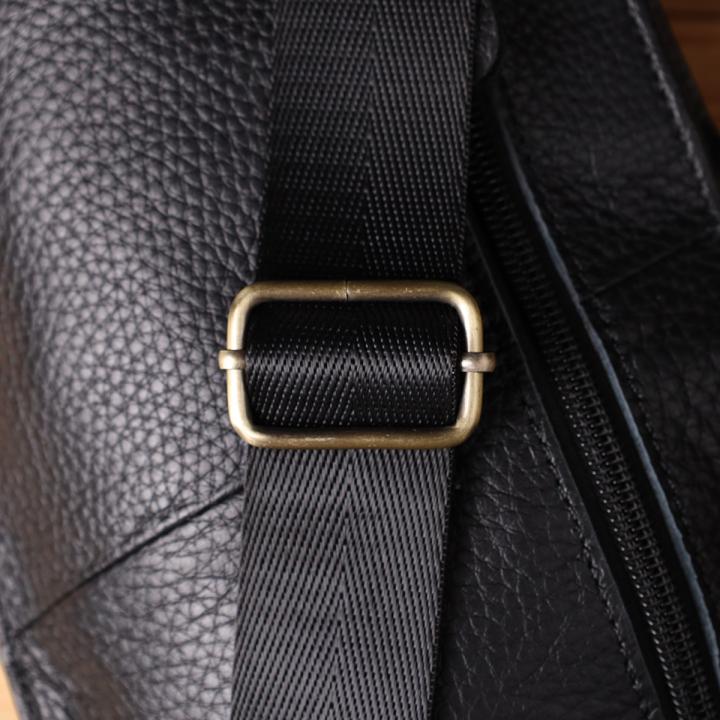 Фурнитура цвета латунь придаёт модели мужской характер и лёгкий винтажный акцент. Регулируемый текстильный ремень обеспечивает комфортную посадку, позволяя носить сумку через плечо или на плече, подстраивая под ваш рост и стиль.
