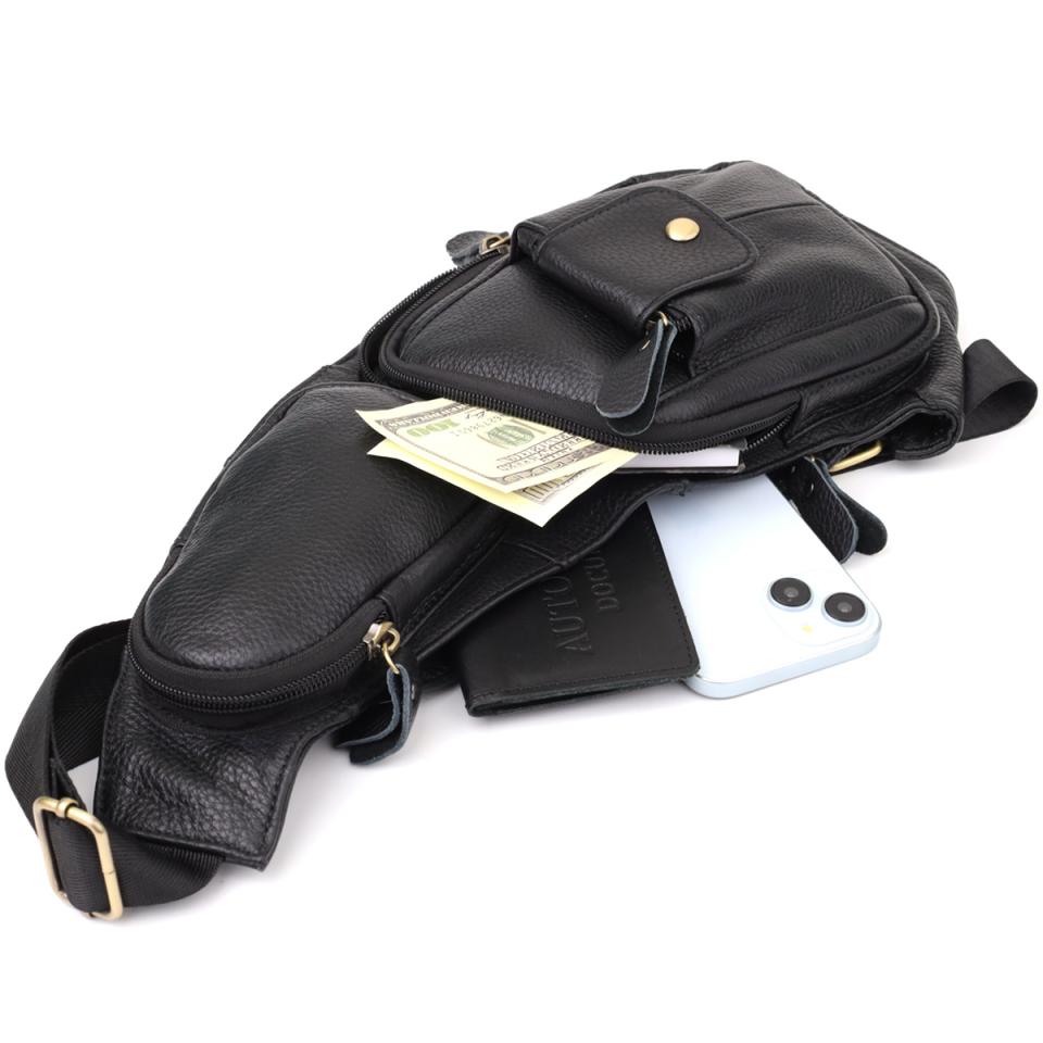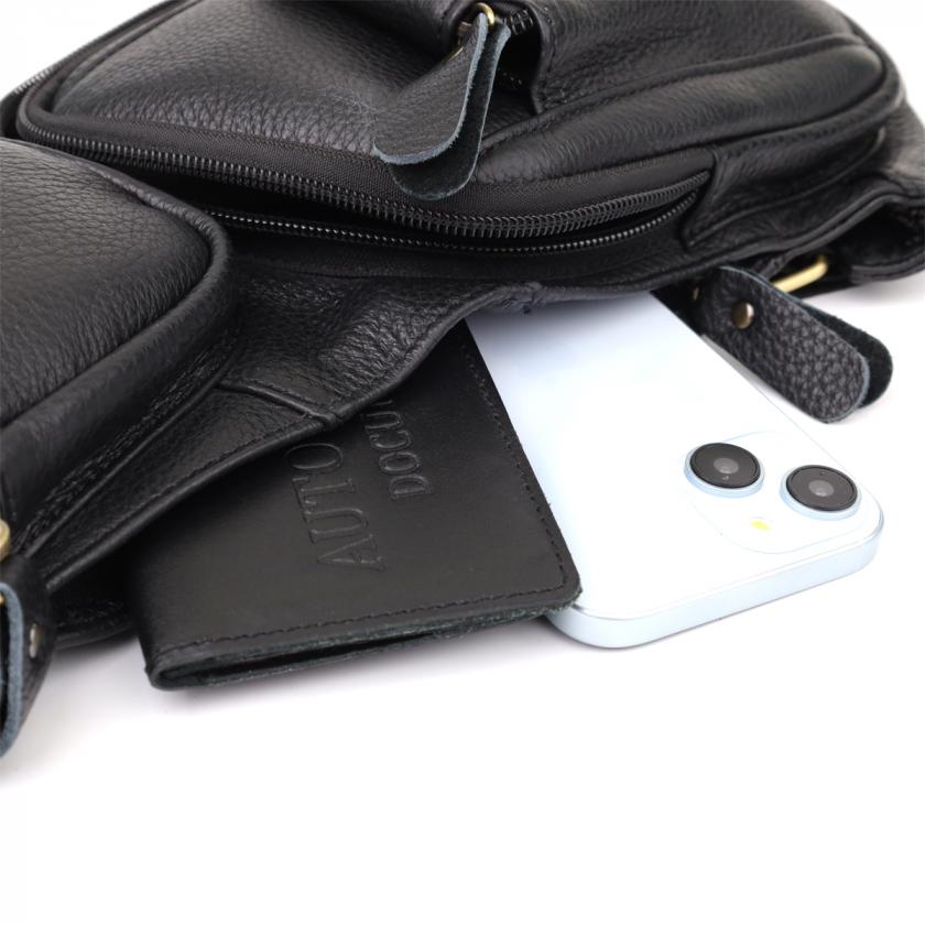 Мужская сумка с большим количеством карманов из натуральной кожи Vintage 22961 Черный