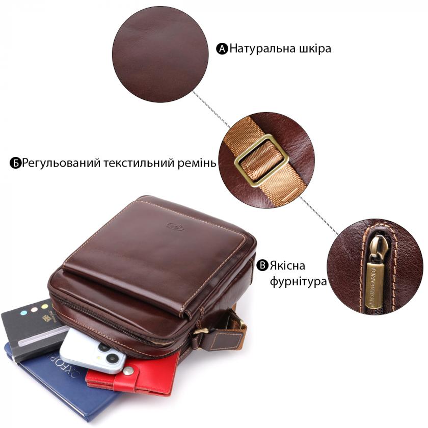 Характеристики: Мужская сумка с карманами из гладкой натуральной кожи Tony Perotti 20856_1 (9148-17 moro) Коричневый