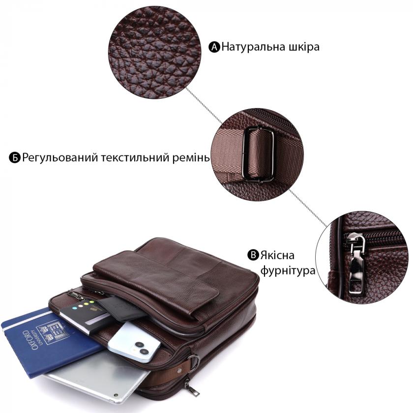 Эта кожаная сумка — отличный выбор для тех, кто ищет сочетание практичности, качества и элегантности в одном аксессуаре.