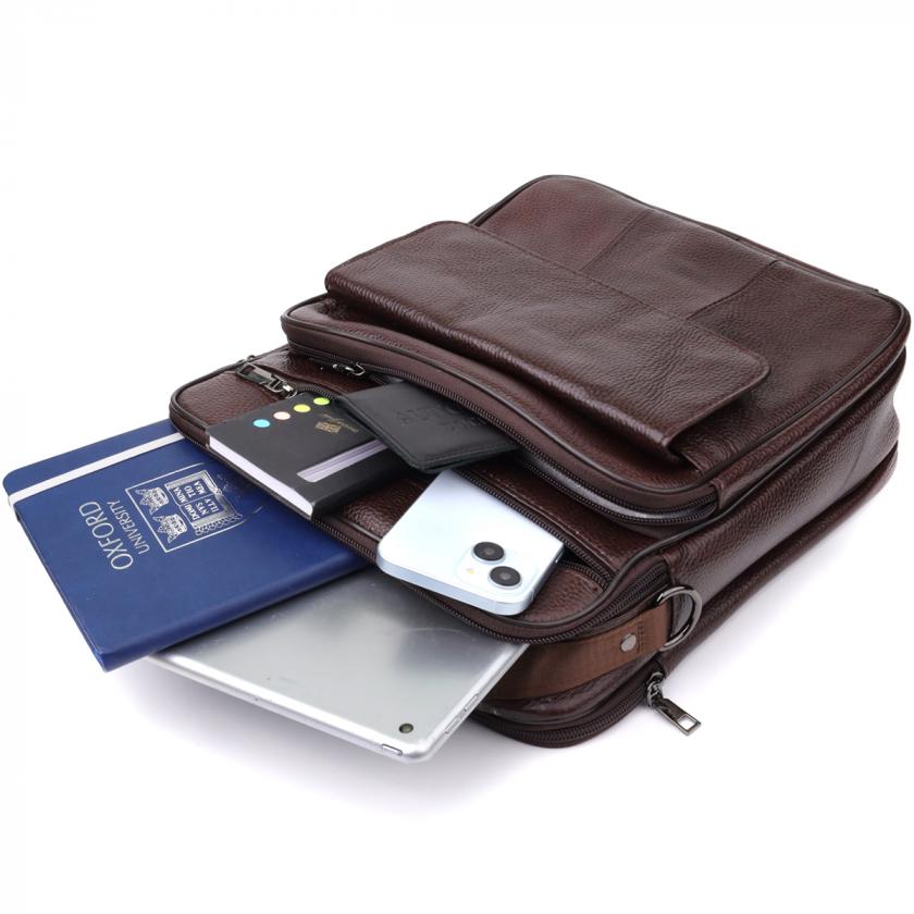 Удобная мужская кожаная сумка из зернистой натуральной кожи сочетает в себе прочность, функциональность и стильный дизайн. Она станет идеальным аксессуаром для тех, кто ценит удобство и организованность в повседневной жизни.