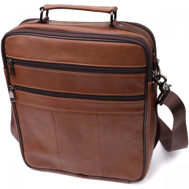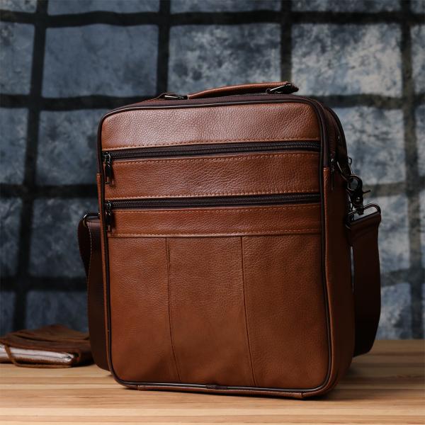 Практичная мужская кожаная сумка из зернистой натуральной кожи сочетает в себе прочность, функциональность и стильный дизайн. Она станет идеальным аксессуаром для тех, кто ценит удобство и организованность в повседневной жизни.