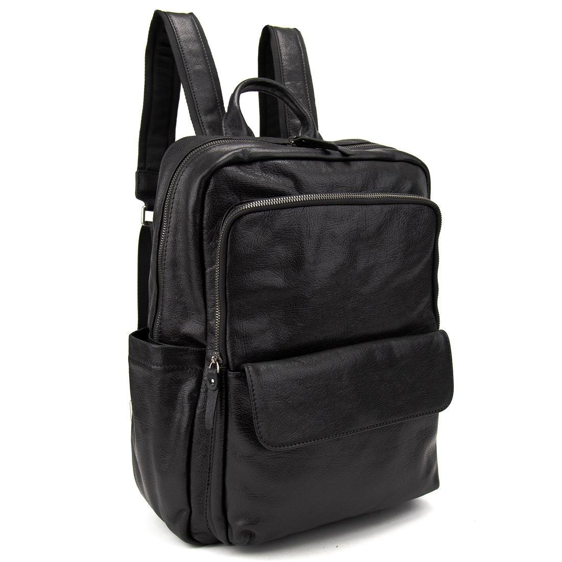 Мужской кожаный рюкзак черный Tiding Bag 2086A изготовлен из натуральной кожи черного цвета.
