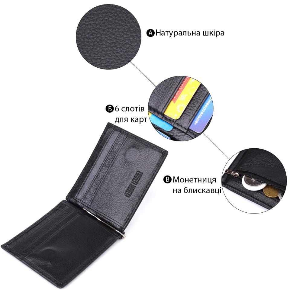 Характеристики: Мужской кошелек с металлическим зажимом из натуральной кожи ST Leather 23092 Черный