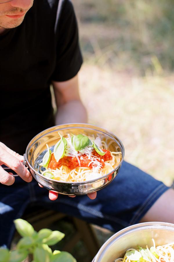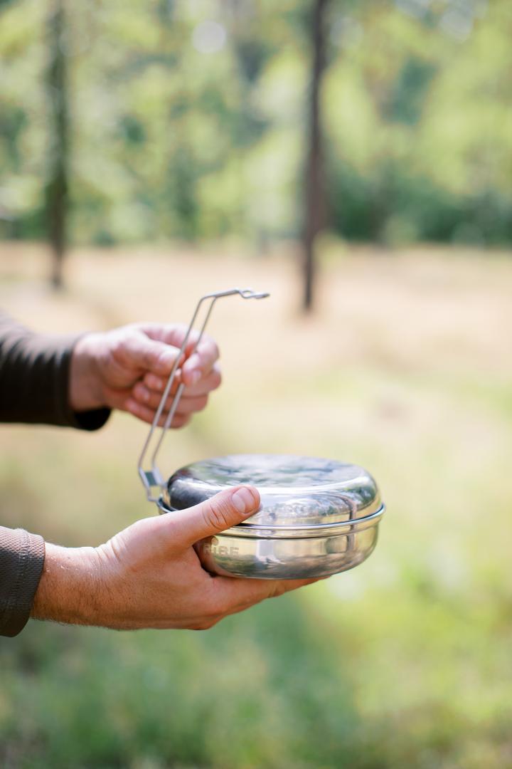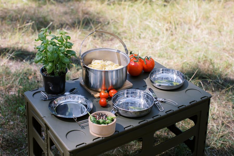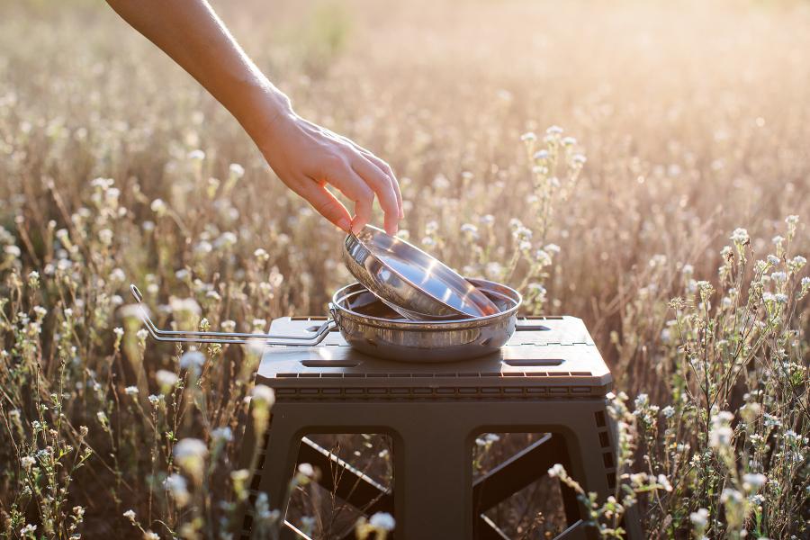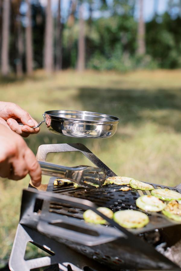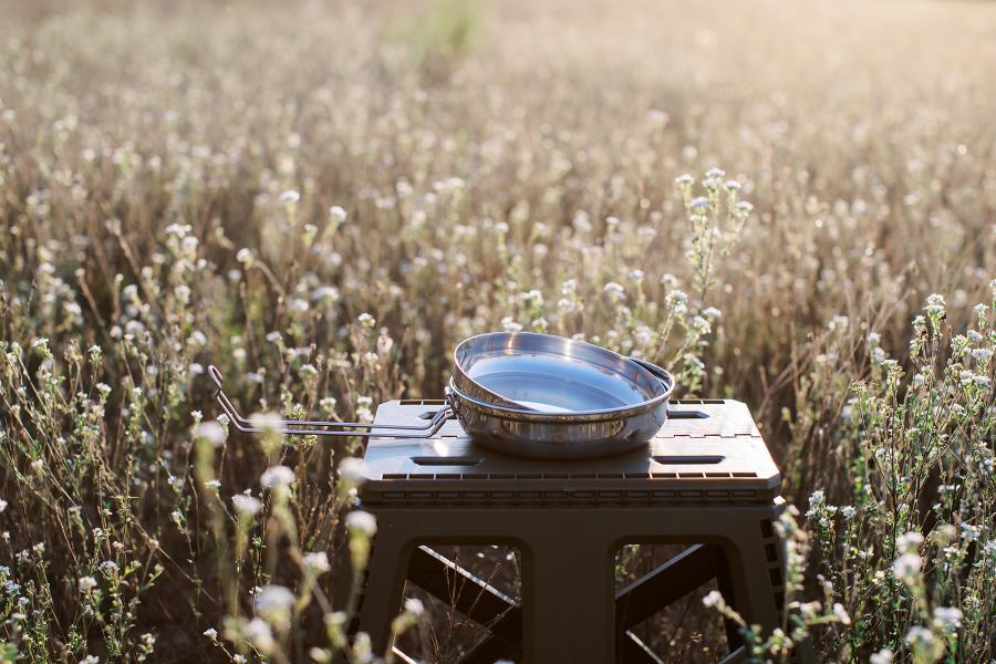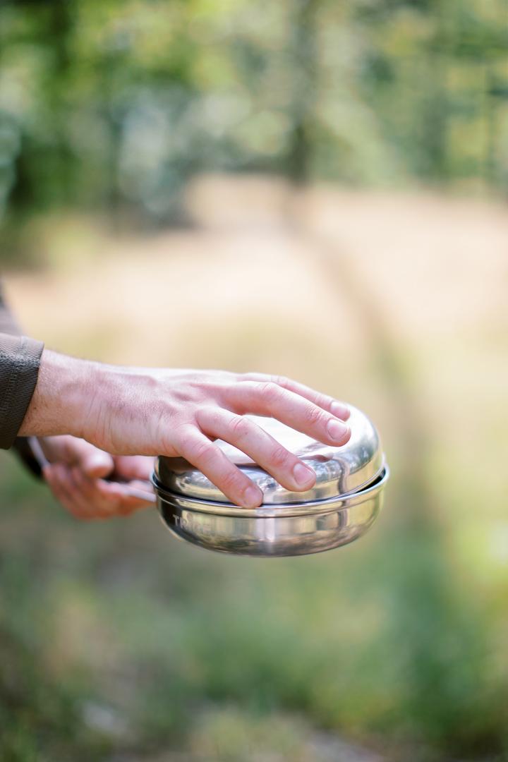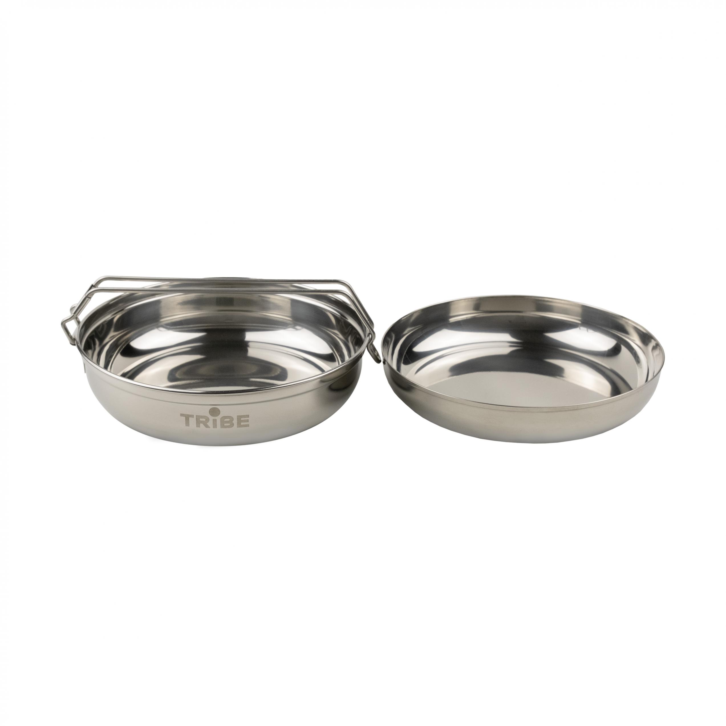 Tribe Single Set - набор посуды для похода и отдыха на природе состоит из двух емкостей: сковорода 0.8 л и тарелка 0.6 л. Single Set изготовлен из нержавеющей пищевой стали, что позволяет использовать его как на костре, так и на горелке или плите. Сковорода имеет складную ручку. Все это компактно складывается в чехол, что делает этот набор удобным для транспортировки и хранения.