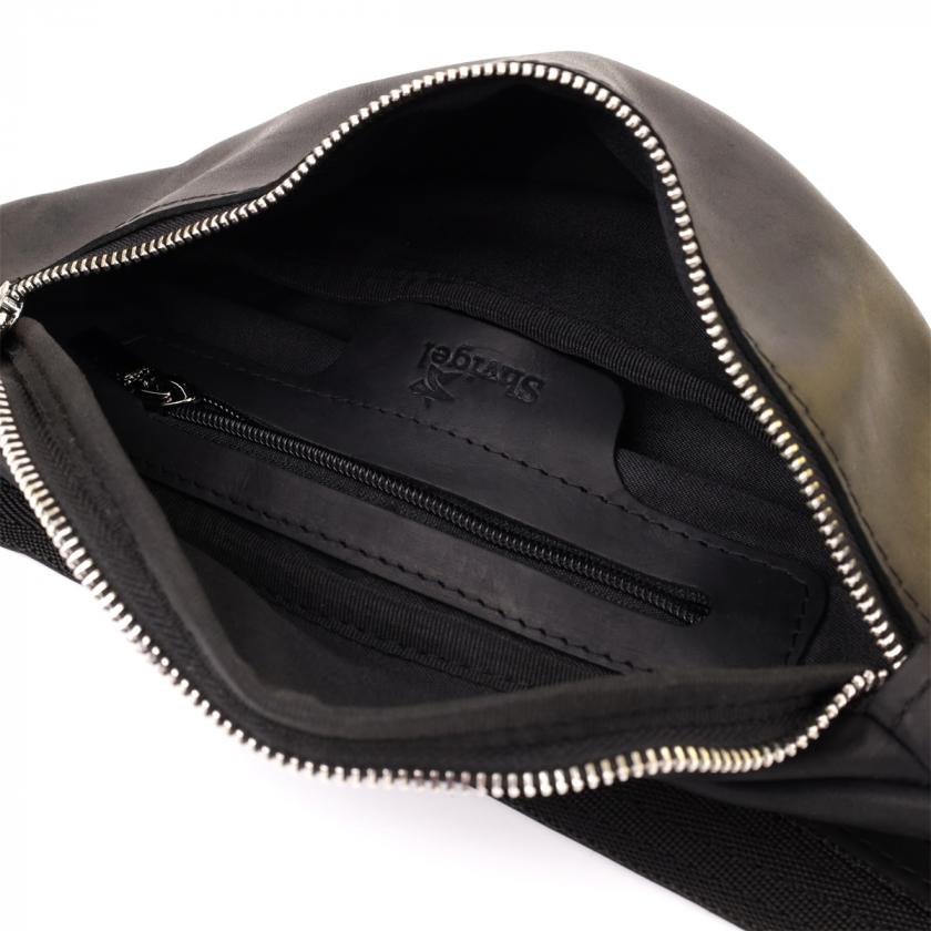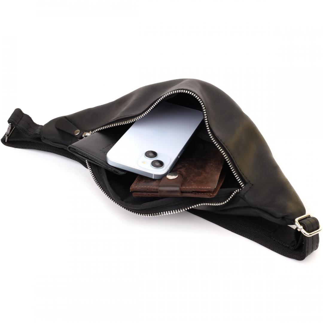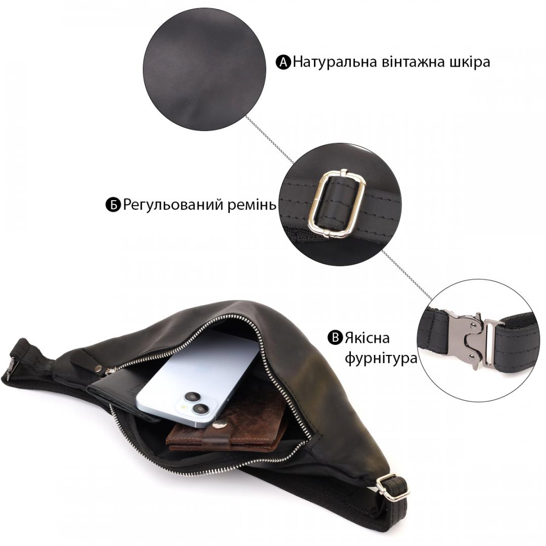 Характеристики: Надежная сумка бананка для мужчин из винтажной натуральной кожи Shvigel 23138 Черный