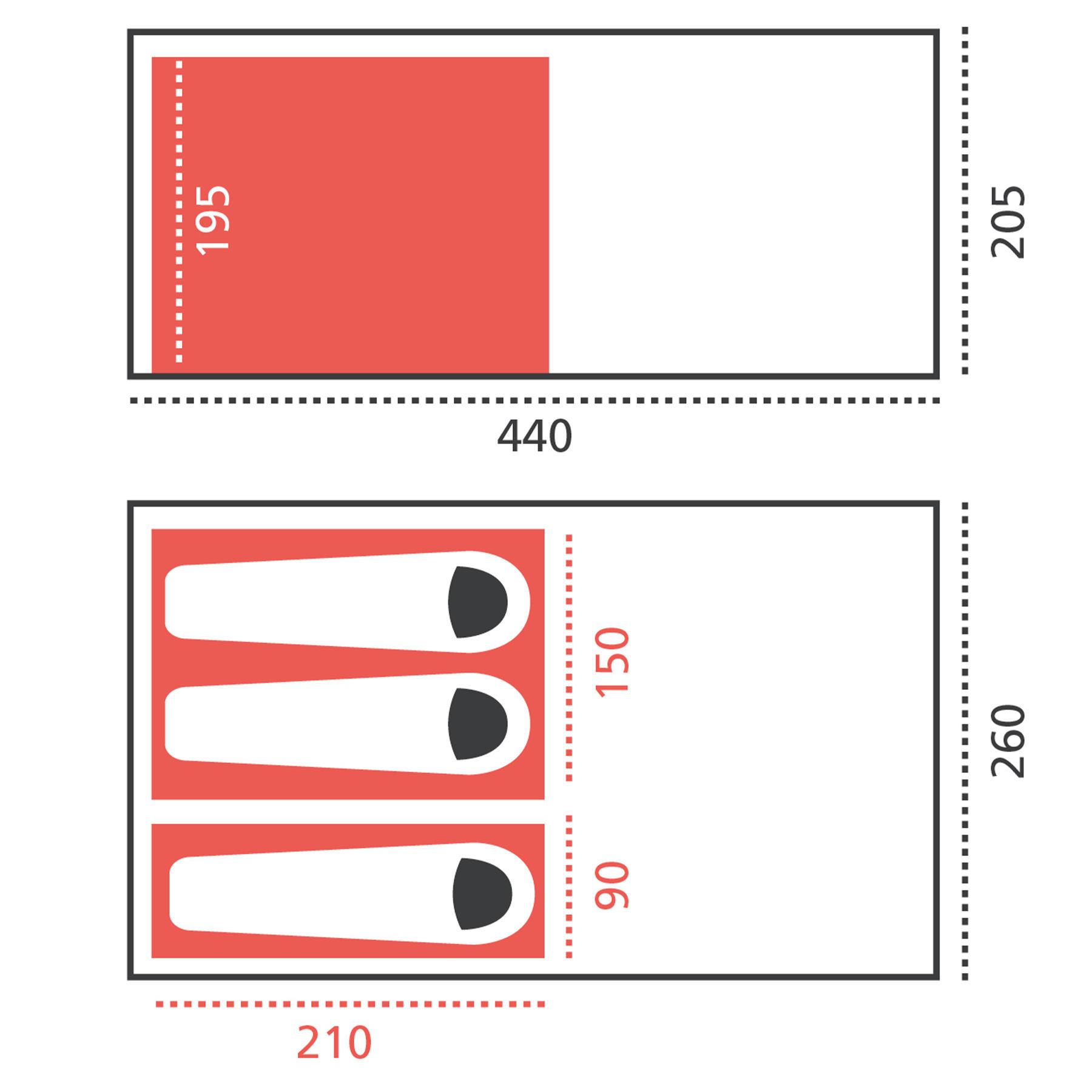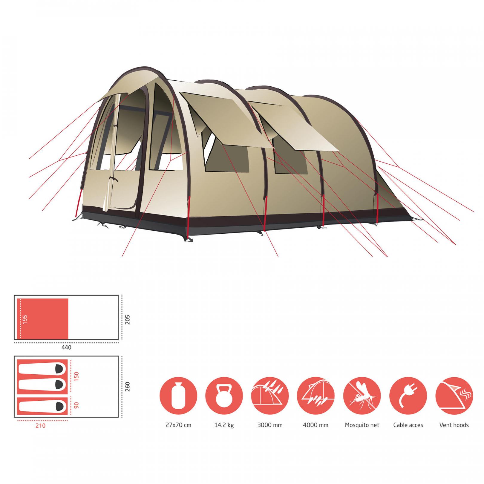 - Зовнішній намет (Д х Ш х В): 440 х 260 х 205 см