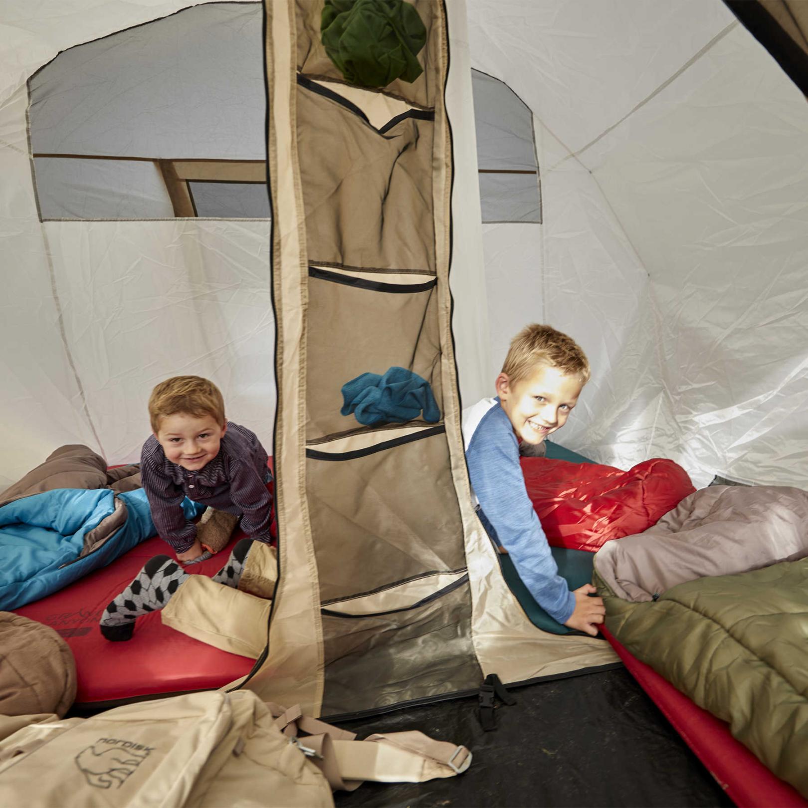 - Внутрішній намет розділений перегородкою на два окремих приміщення. В більшому приміщенні можуть розміститись двоє дорослих і дитина, в меншому приміщенні - один дорослий, або двоє дітей, або багаж.