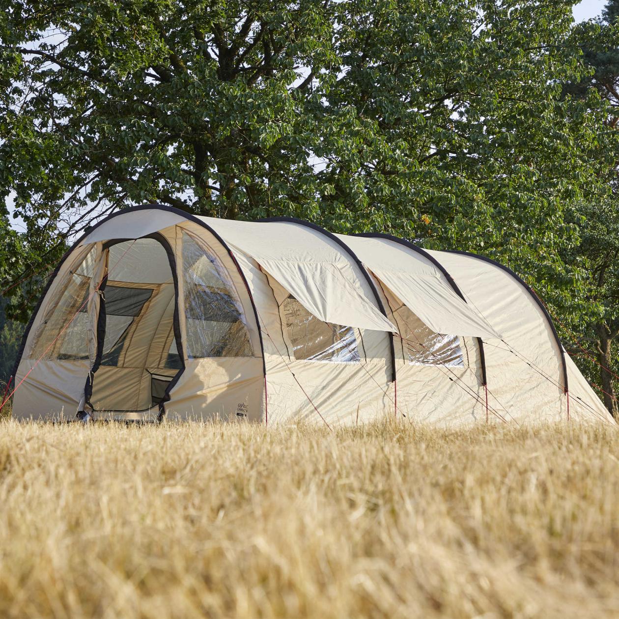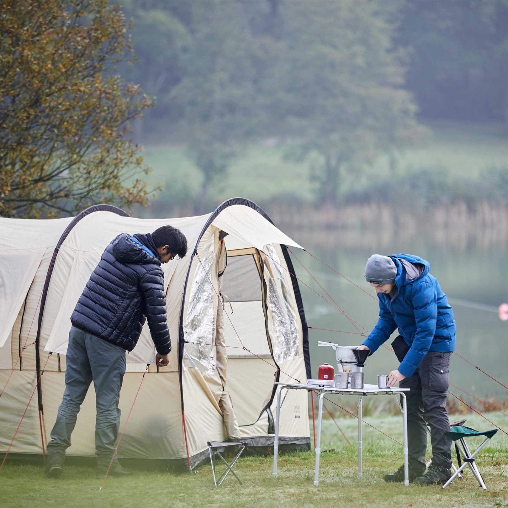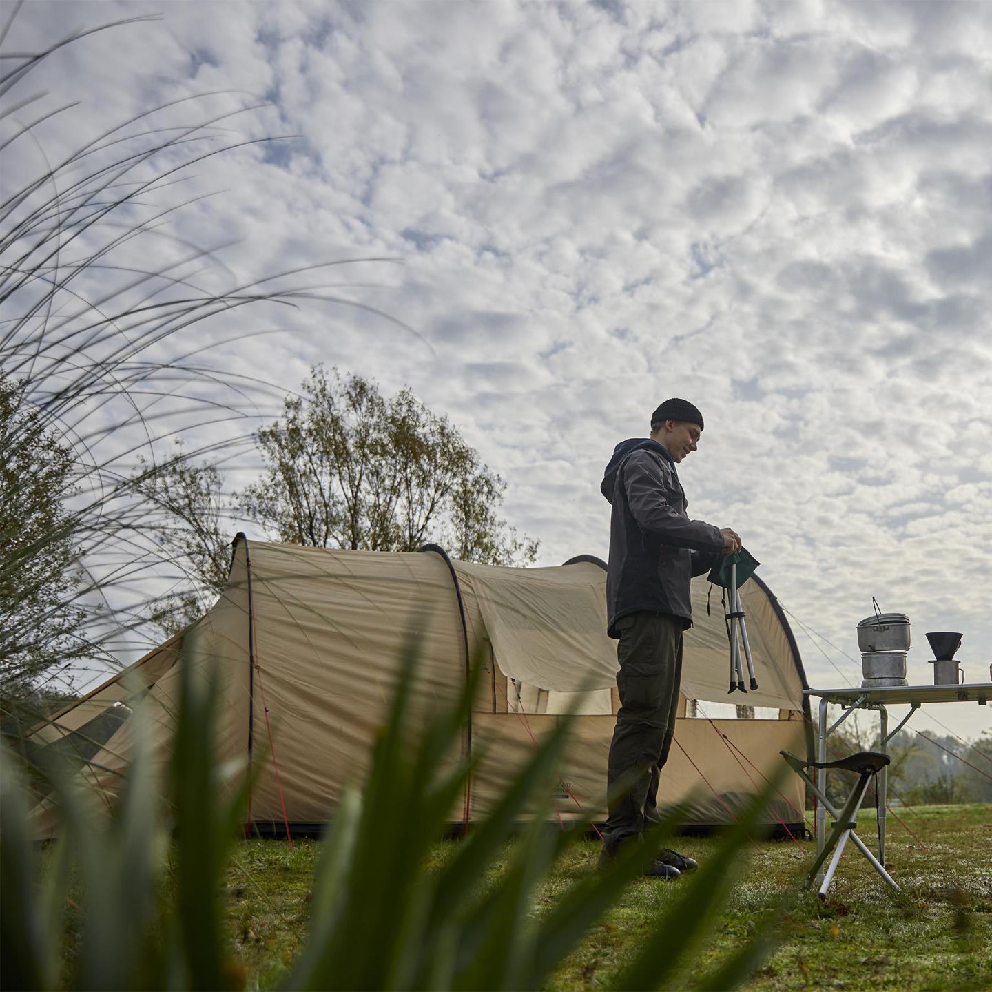 - Суцільна підлога зовнішнього тенту запобігає проникненню вологи, або комах всередину намету.