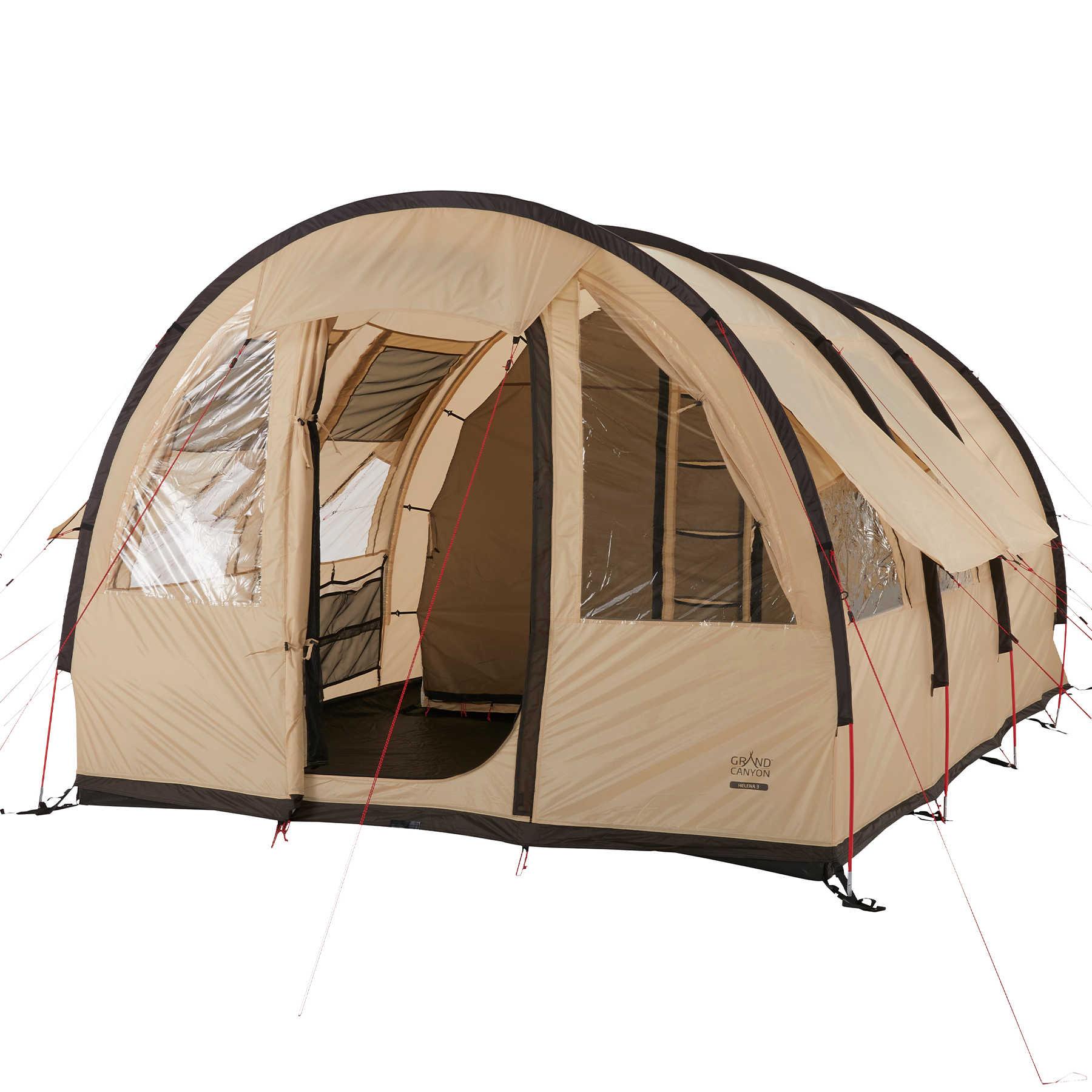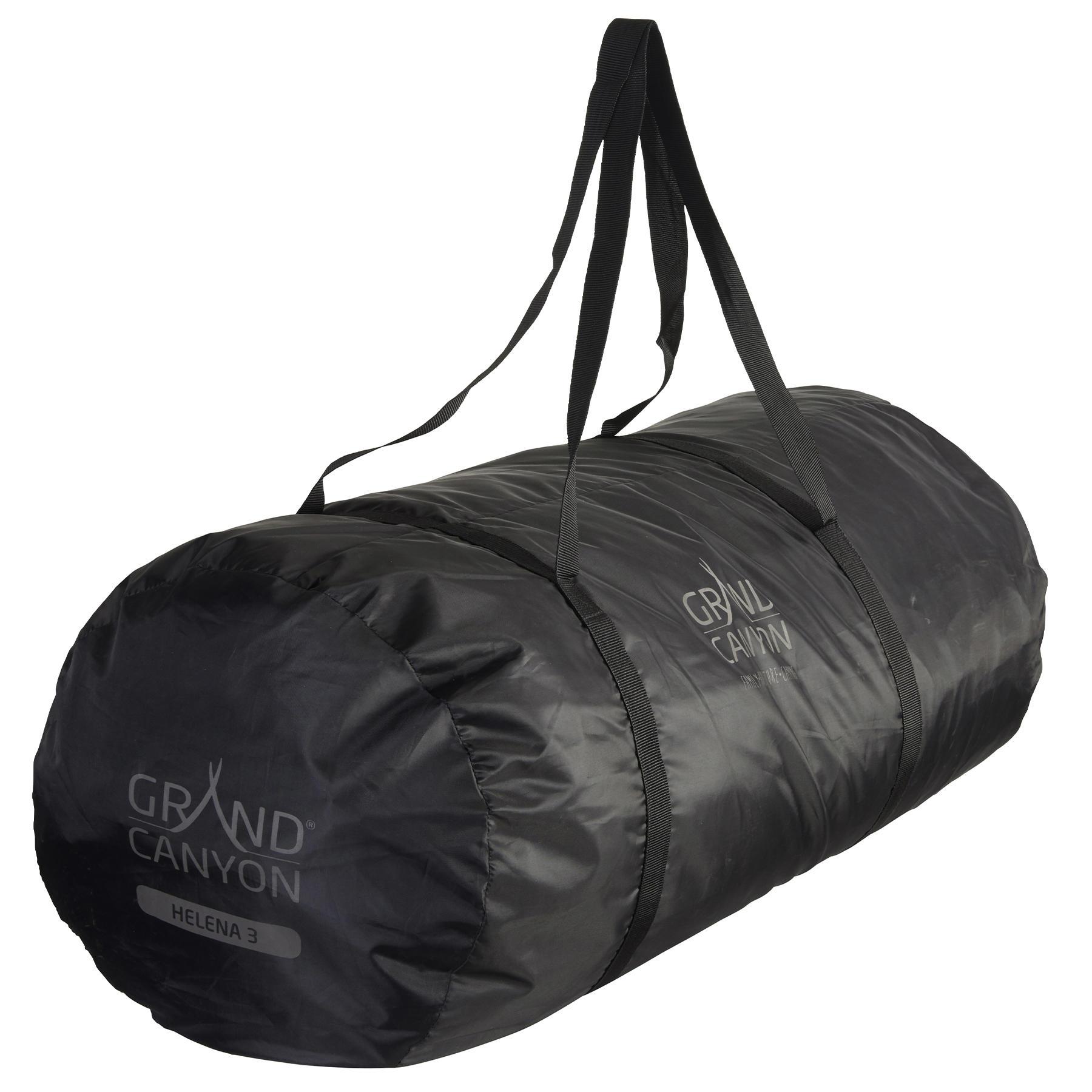 Навряд чи можна знайти інший на стільки ж великий і просторий тримісний намет. Часто невелика компанія або сім'я потребує на відпочинку більше простору, ніж здатні дати інші тримісні намети, саме тому Grand Canyon Helena 3 займає особливе місце серед інших моделей. Величезний тамбур де можна розмістити кемпінгову кухню та кілька людей для відпочинку і спілкування під час негоди, розділений шторкою приватності на дві частини спальний простір із збільшеними спальними місцями, великі прозорі вікна із вставками москітної сітки, висока стеля, що дозволяє стояти в повний зріст - все це забезпечує небувалий внутрішній простір, велику кількість світла та гарну вентиляцію. Збільшені спальні місця дозволяють додатково розмістити в наметі двох дітей молодшого шкільного віку.
