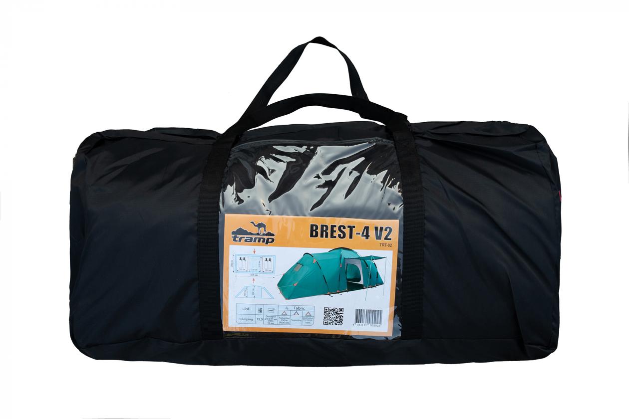Палатка Tramp Brest 4 (V2) - двухкомнатная кемпинговая палатка для отдыха на природе, рассчитана на комфортное расположение 4 человек. Увеличенный тамбур позволяет удобно разместить мебель и принадлежности. Для более комфортного расположения и удобства уборки внутри палатки – пол в тамбуре при необходимости снимается. Благодаря использованию комбинации фибергласса и стали, каркас палатки не только прочный и надежный, но и более легкий.