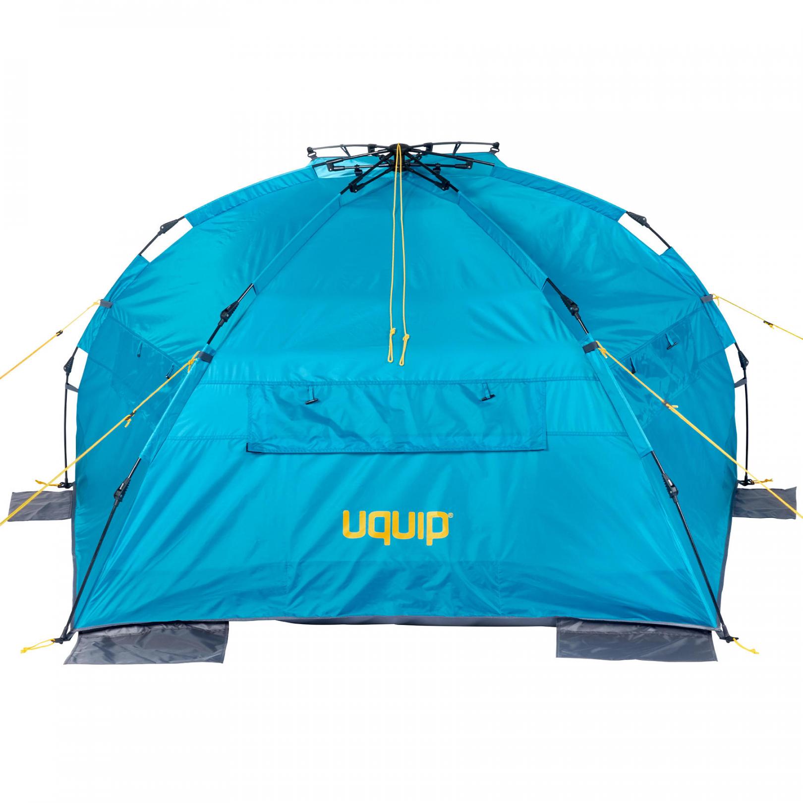 Намет можна використовувати і для кемпінгу, і для риболовлі. Довжина намету, двері, що зачиняються і відмінне провітрювання через вентиляційні вікна дозволяють ночувати в наметі. Інноваційний швидкозбірний механізм каркаса дозволяє навіть непідготовленому користувачеві повністю встановити і зафіксувати кілочками Uquip Speedy за пару хвилин. Рівень захисту від ультрафіолету UV 50+ свідчить про зниження впливу ультрафіолету на шкіру в 50 разів, і робить цю модель, перш за все, однією з кращих наметів для пляжного відпочинку.
