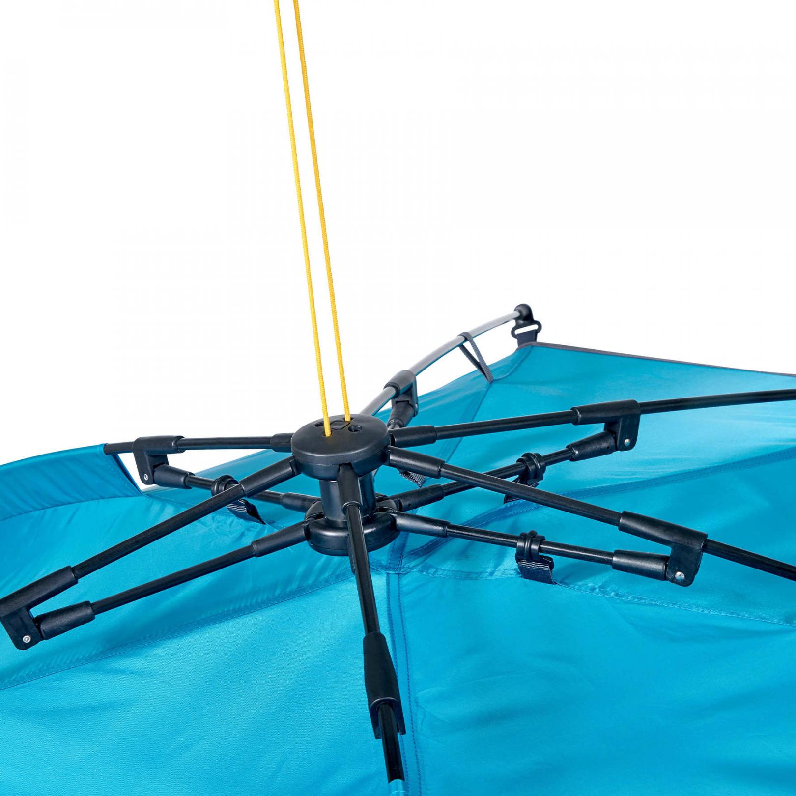 Намет Uquip Speedy XL пропонує ще більше простору для сімейного відпочинку на пляжі чи в кемпінгу. Це один з небагатьох швидкозбірних пляжних наметів, який має двері, що закриваються. Складно не погодитися, наскільки це може бути важливо на пляжі, особливо коли до роздягальні досить далеко. В якості дверей в даному наметі виступає багатофункціональна підлога, яка може складатися під намет, розстелятися перед наметом, збільшуючи зону відпочинку, а також підніматися і закривати вхід в намет. Таким чином, область застосування Uquip Speedy значно розширюється.