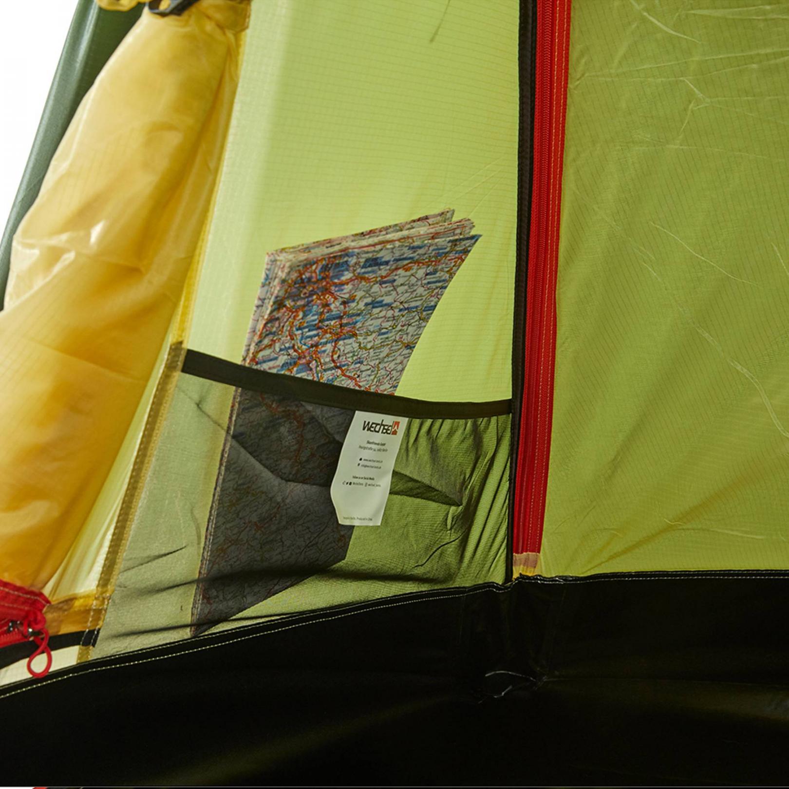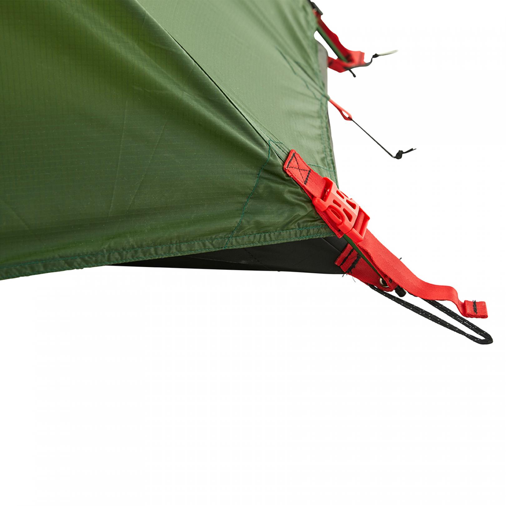 - Фастекси з'єднання внутрішнього намету і зовнішнього тенту розгорнуті таким чином, щоб контроль натягу тенту можна було легко зробити однією рукою. Пряжки петель фіксації тенту кілочками також регульовані.