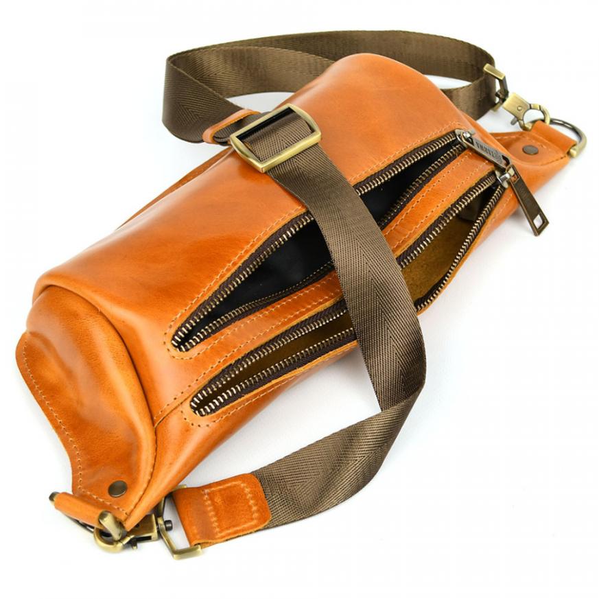 Напоясная сумка бананка в размере L TARWA GY-3106-2lx 2 отделения рыжая. Две молнии спереди: одно основное отделение и передний карман на молнии. Внутри тканевая подкладка.