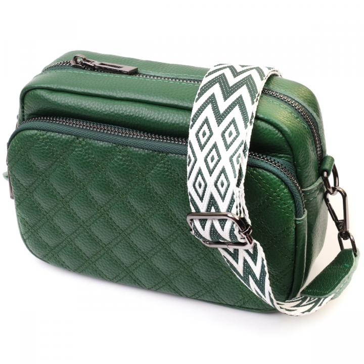 Отзывы: Небольшая женская сумка прошитая ромбами на лицевой стороне из натуральной кожи Vintage 22635 Зеленая