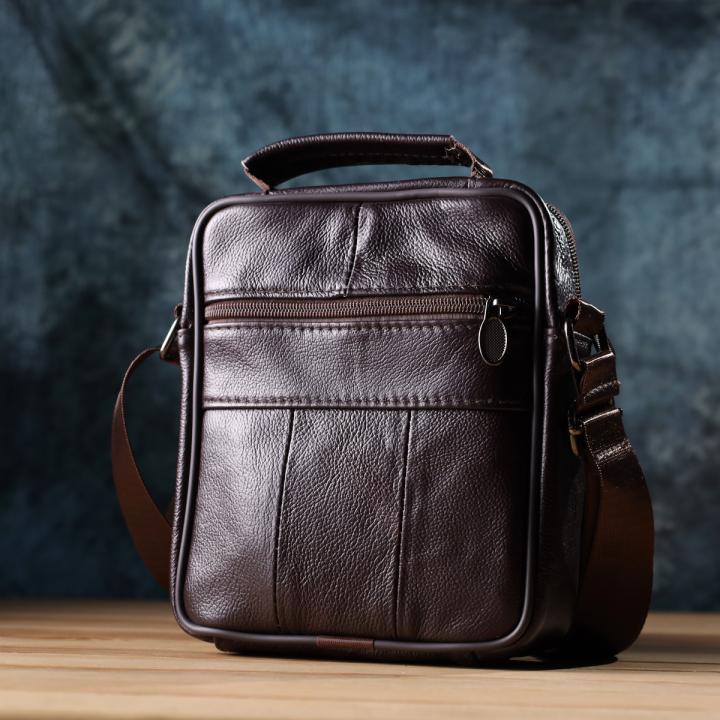 Отзывы: Небольшая вертикальная сумка с ручкой для мужчин из натуральной кожи Vintage 22865 Коричневый