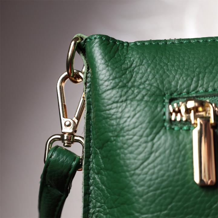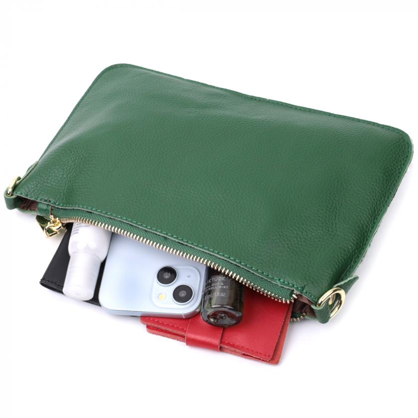 Оригинальная женская сумка-клатч с двумя ремнями из натуральной кожи Vintage 22647 Зеленая