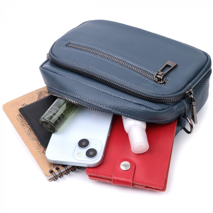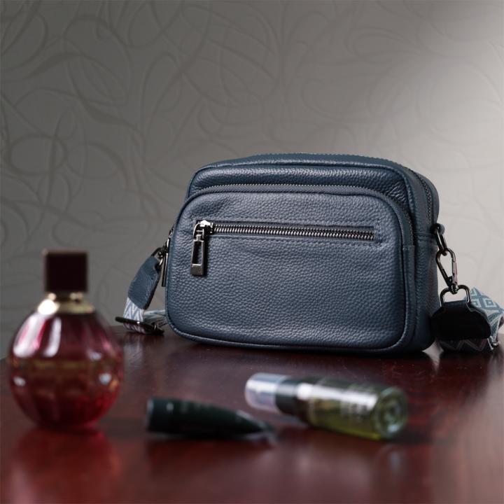 Отзывы: Оригинальная женская сумка с накладным карманом из натуральной кожи Vintage 22641 Синяя