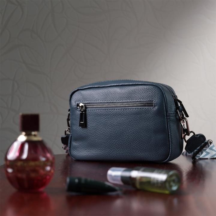 Небольшая но вместительная сумка для женщин из натуральной кожи. Аксессуар состоит из основного отделения, что закрывается на молнию, кармана открытого типа и кармана на молнии внутри и трех карманов снаружи. Носить сумку можно на плече и через плечо, также можно носить как клатч под рукой, для этого можно снять текстильный ремешок.