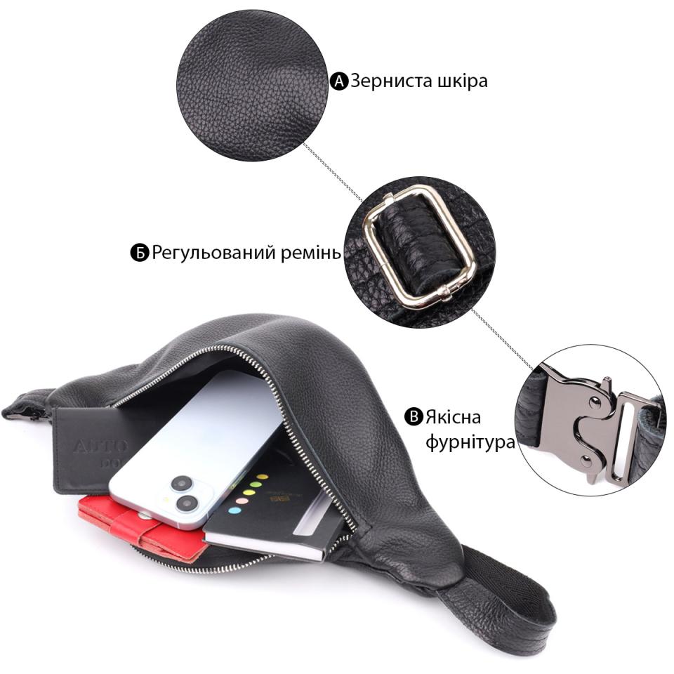 Характеристики: Отменная сумка бананка из зернистой натуральной кожи Shvigel 23145 Черный