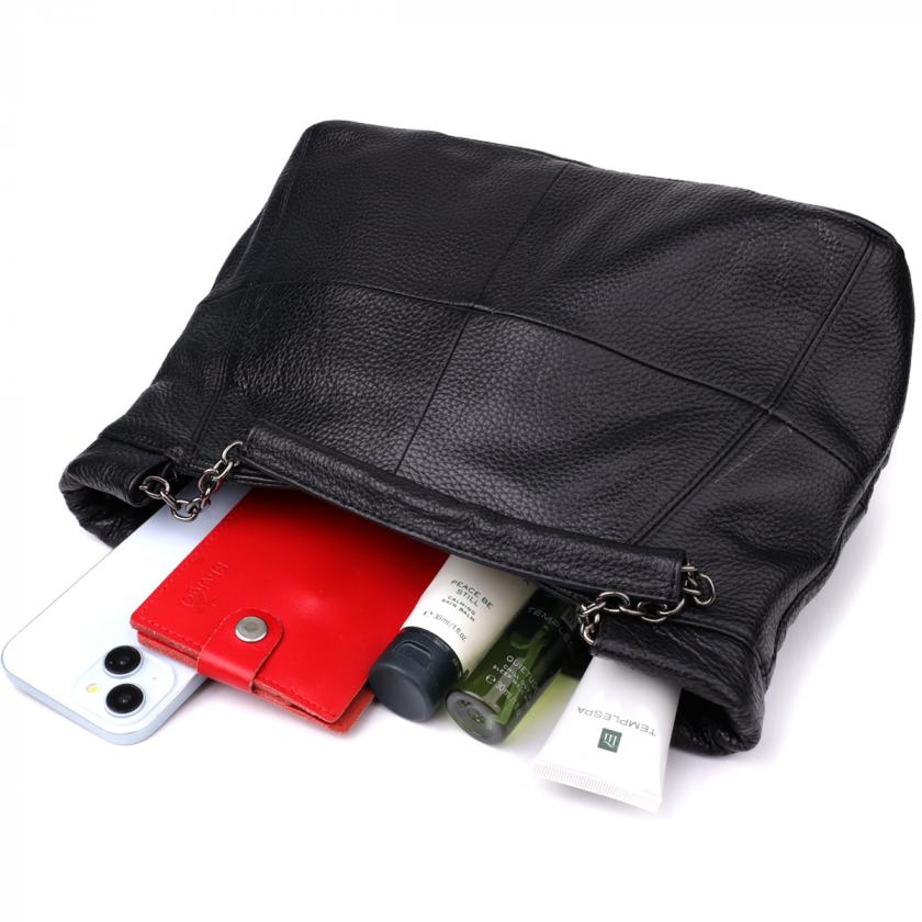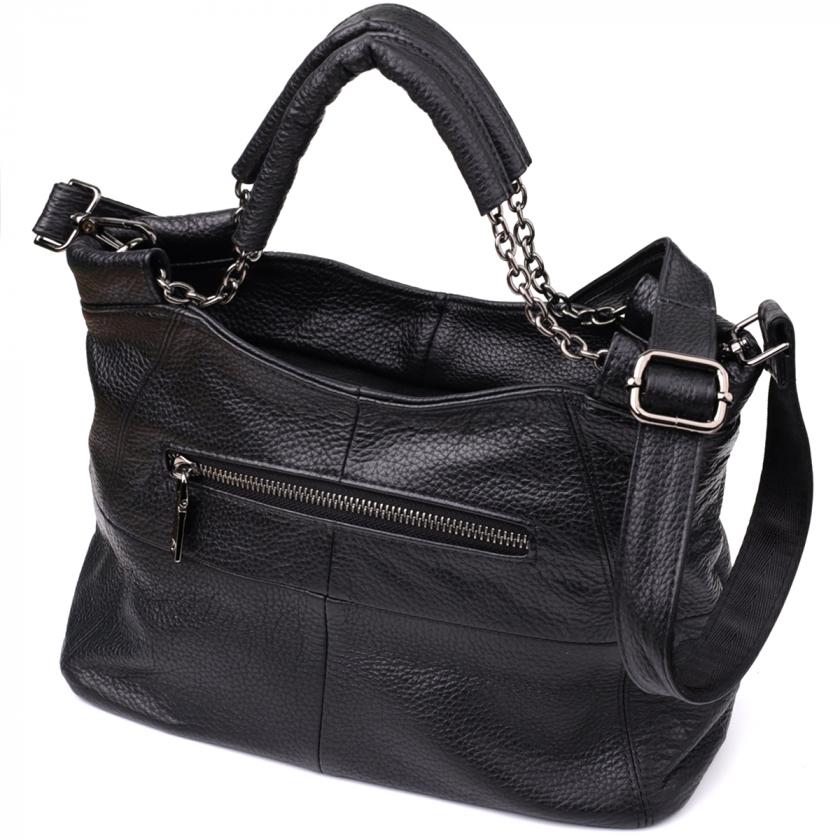 Эта чёрная кожаная сумка от бренда Vintage — идеальный выбор для женщин, которые ценят универсальность, стиль и практичность в одном аксессуаре.