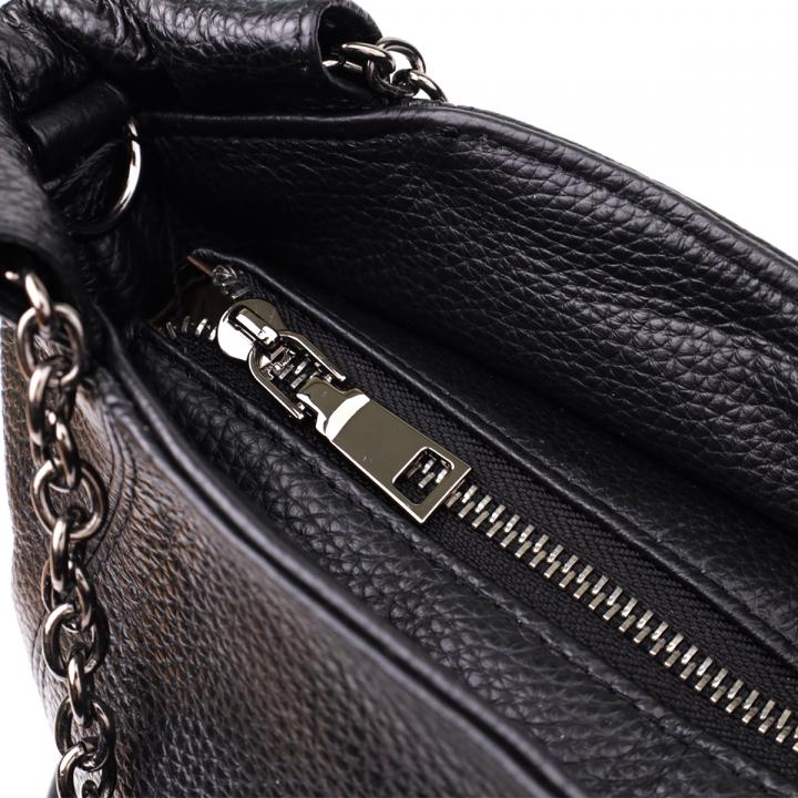 Женская кожаная сумка Vintage черного цвета — сдержанная элегантность и продуманная функциональность. Эта универсальная модель из натуральной кожи станет незаменимым аксессуаром для любой современной женщины. Классический чёрный цвет делает сумку подходящей под любой образ — будь то деловой стиль, повседневный гардероб или вечерний выход. Высококачественная кожа гарантирует долговечность и сохраняет безупречный внешний вид на протяжении долгого времени.