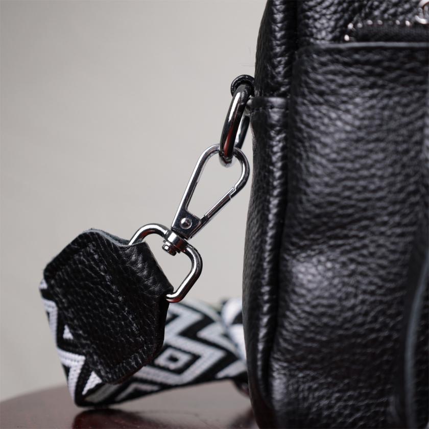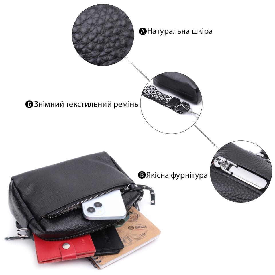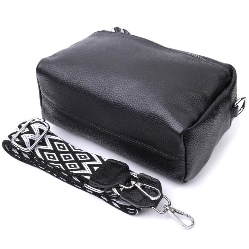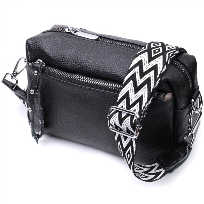 Характеристики: Практичная женская кожаная сумка из стильным бегунком Vintage 22654 Черная