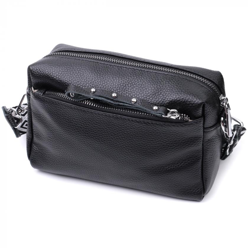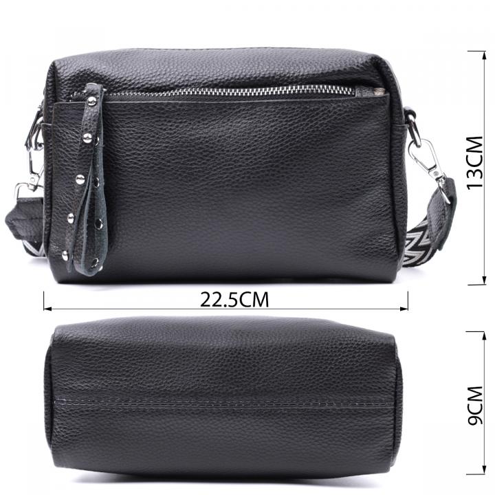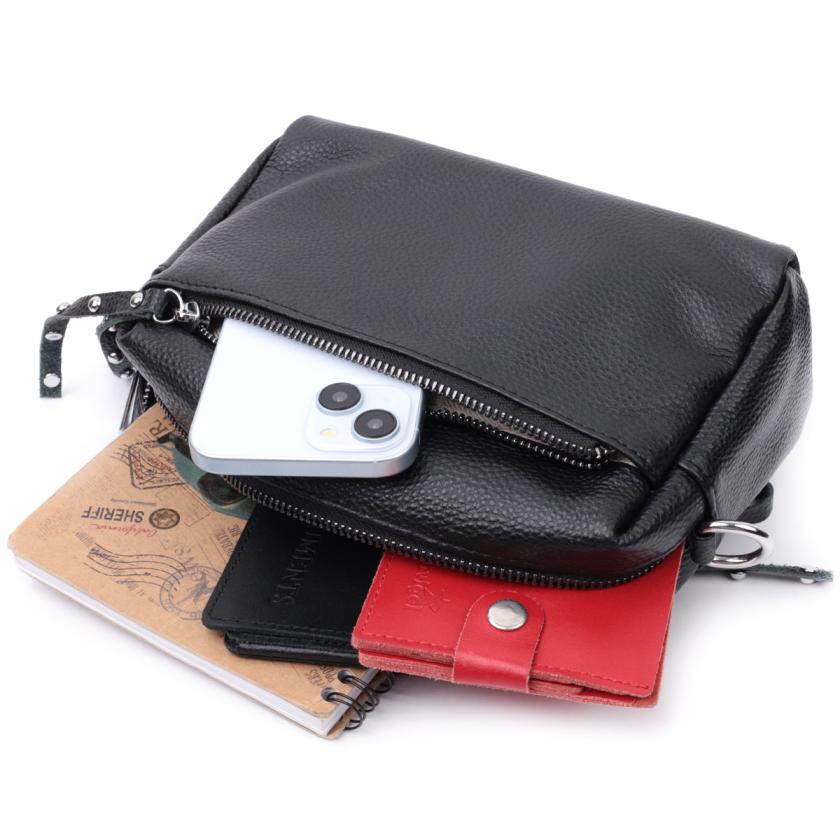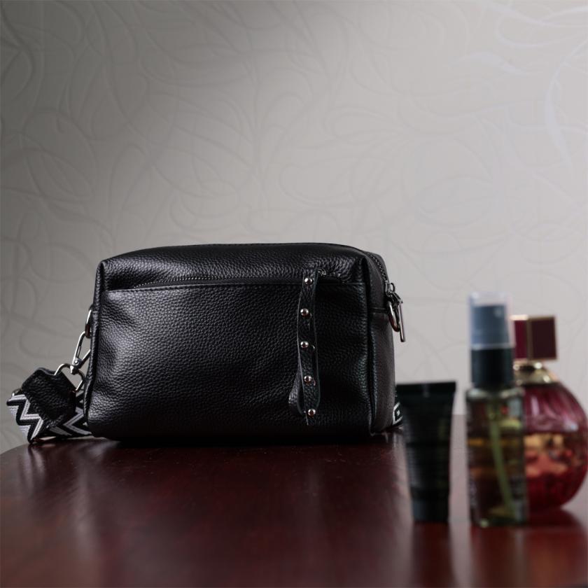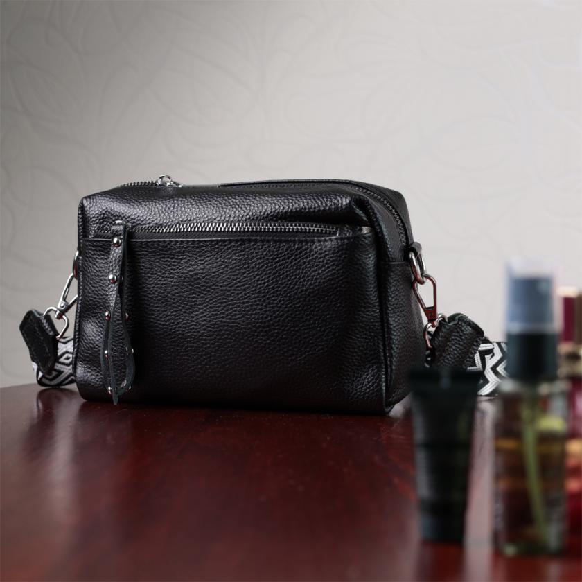 Отзывы: Практичная женская кожаная сумка из стильным бегунком Vintage 22654 Черная