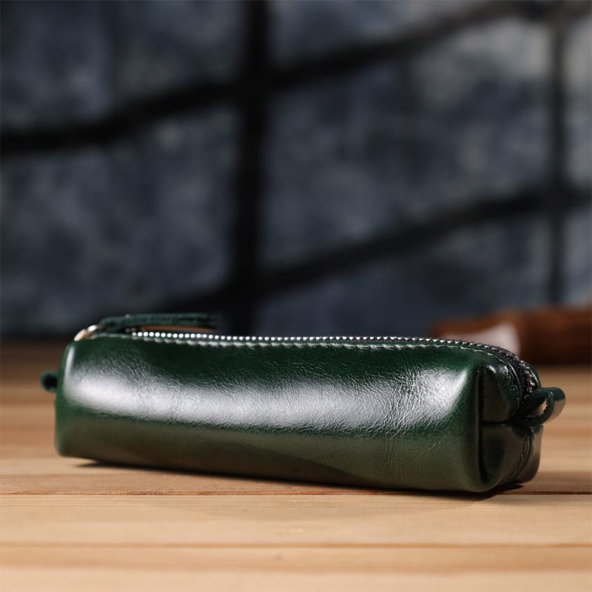 Элегантная ключница-тубус на молнии, выполненная из натуральной кожи высокого качества — практичный и стильный аксессуар, который подойдет как мужчинам, так и женщинам. Модель представлена в универсальном и насыщенном зеленом цвете, который добавляет изюминку, оставаясь при этом сдержанным и благородным. Компактная форма тубуса делает ключницу удобной для повседневного использования — она легко помещается в сумке, рюкзаке или кармане, не занимая лишнего места. Молния надежно фиксирует содержимое внутри, а мягкая кожа бережно сохраняет как ключи, так и окружающие вещи: забудьте о царапинах на экране телефона или других повреждениях. Изделие поставляется в фирменном чехле, что делает его отличным решением не только для личного использования, но и в качестве стильного подарка для близких.