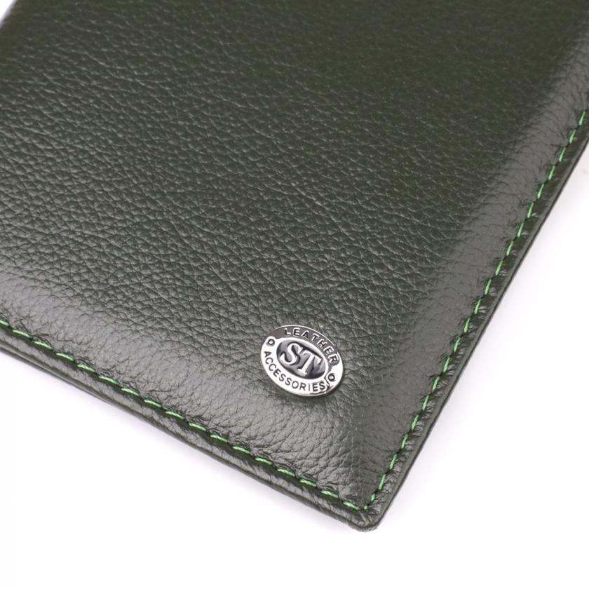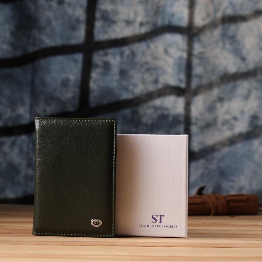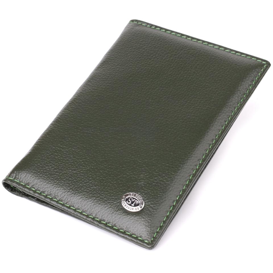 Практичная обложка на паспорт универсального формата из натуральной кожи ST Leather 23081 Зеленый