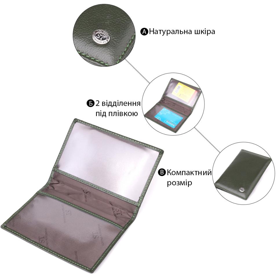 Характеристики: Практичная обложка на паспорт универсального формата из натуральной кожи ST Leather 23081 Зеленый