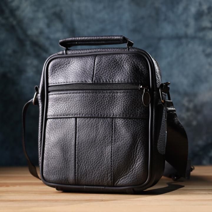 Отзывы: Практичная вертикальная сумка с ручкой для мужчин из натуральной кожи Vintage 22864 Черный