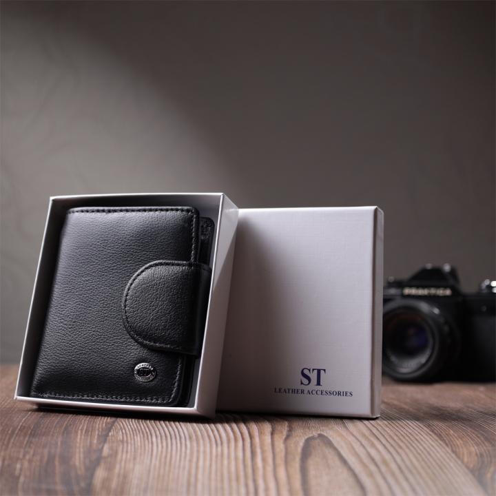 Отзывы: Практичный кошелек для женщин с карманом для монет из натуральной кожи ST Leather 22725 Черный