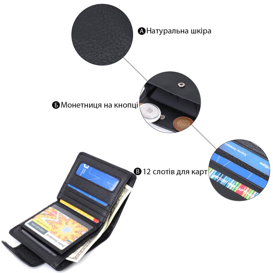 Характеристики: Практичный кошелек для женщин с карманом для монет из натуральной кожи ST Leather 22725 Черный