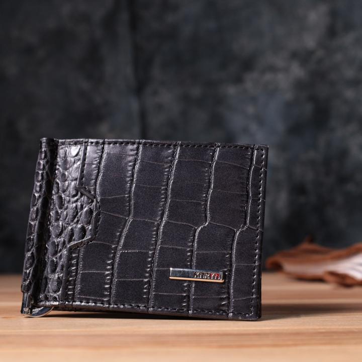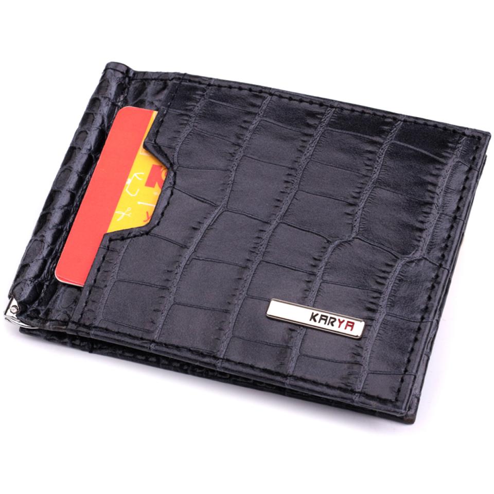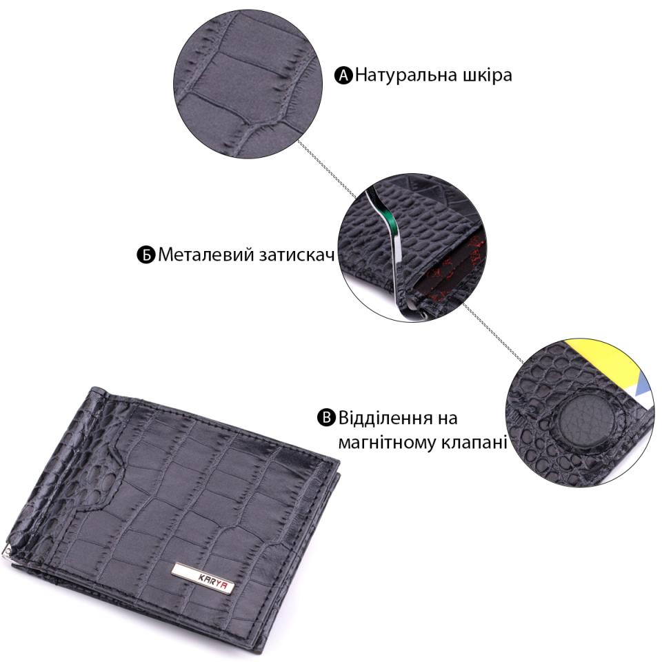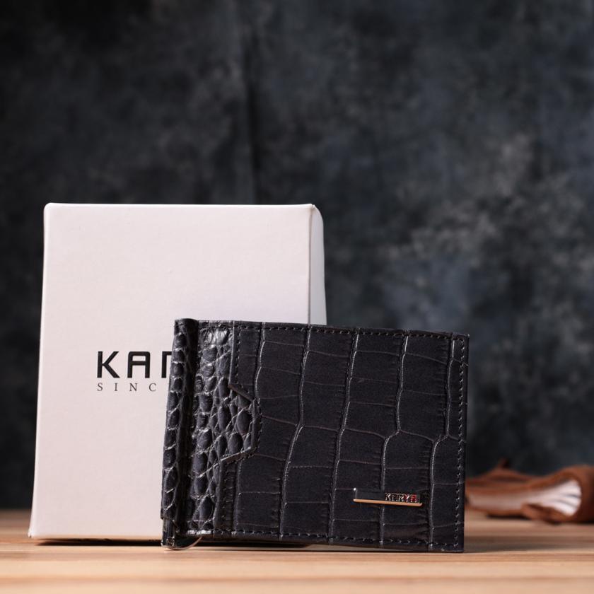 Характеристики: Практичный мужской кошелек-зажим из натуральной кожи KARYA 22851 Серый