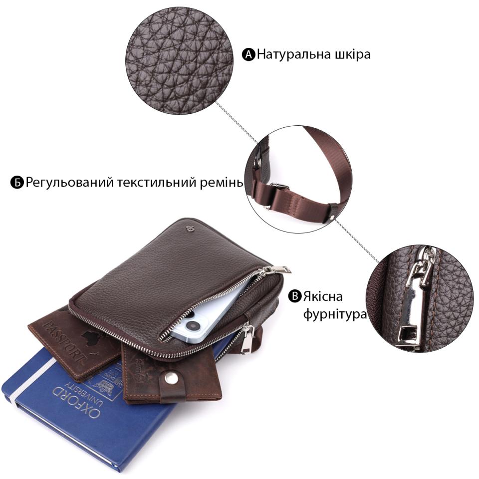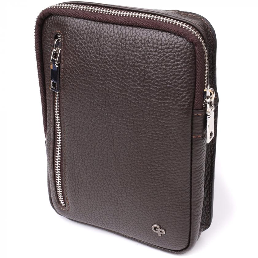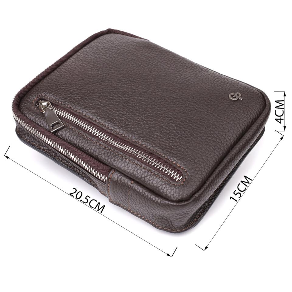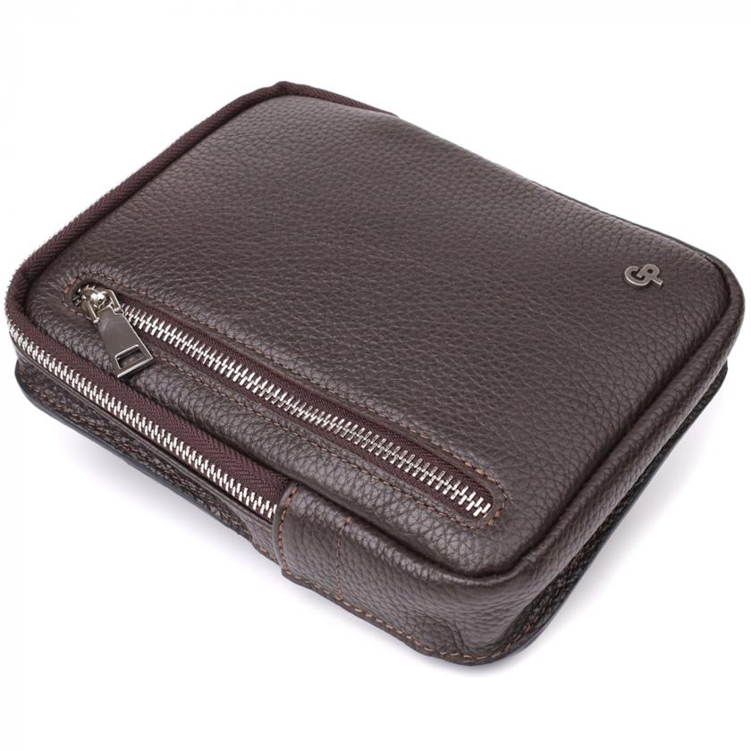 Характеристики: Прямоугольная сумка бананка из зернистой натуральной кожи GRANDE PELLE 22878 Коричневая