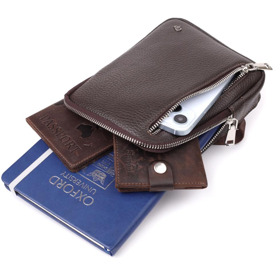 Отзывы: Прямоугольная сумка бананка из зернистой натуральной кожи GRANDE PELLE 22878 Коричневая